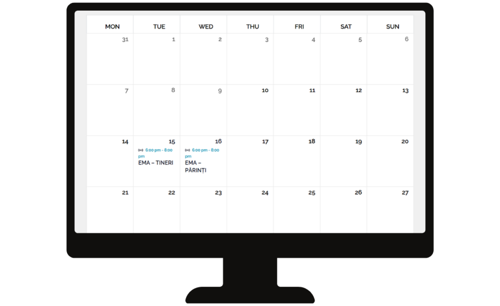Pentru interpretarea testelor, ședințe de consiliere sau alte activități, toți utilizatorii pot vizualiza și accesa acest calendar